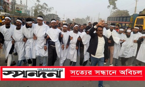 কালীগঞ্জ (ঝিনাইদহ) প্রতিনিধি : ঝিনাইদহ-৪ (কালীগঞ্জ) আসনে বিএনপির জোট থেকে গণঅধিকার পরিষদের কেন্দ্রিয় সাধারণ সম্পাদক রাশেদ খানকে মনোনয়ন দেয়ায় কালীগঞ্জে স্থানীয় বিএনপির মধ্যে অসন্তোষ চলছেই। শুক্রবার বিকালে তারা মনোনয়ন পুণর্বিবেচনার দাবিতে শহরের মেইন বাসস্ট্যান্ডে প্রতিবাদ সমাবেশ ও বিক্ষোভ মিছিল করে। এ সময় ছাত্রদলের নেতাকর্মীরা কাফনের কাপড় পড়ে প্রায় আধাঘন্টা মহাসড়ক অবরোধ করে রাখে। নেতাকর্মীদের দাবি-কেন্দ্রিয় স্বেচ্ছাসেবক দলের নেতা সাইফুল ইসলাম ফিরোজ বা বিএনপির কাউকে ধানের শীষের মনোনয়ন দিতে হবে। তারা বহিরাগত কাউকে মেনে নিবে না। অবরোধে সড়কের দুইধারে প্রায় শতাধিক যানবাহন আটকা পড়ে। পরে সমাবেশ শেষে অবরোধ তুলে নিলে যান চলাচল স্বাভাবিক হয়।