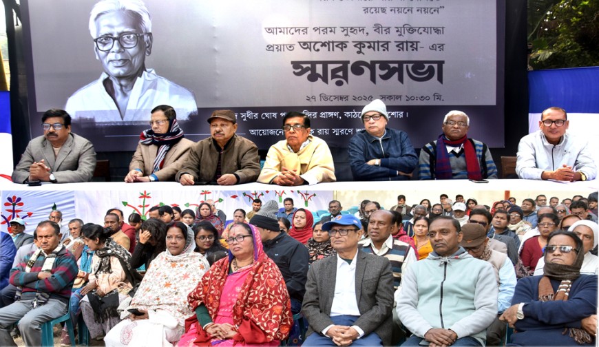 নিজস্ব প্রতিবেদক : সদ্যপ্রয়াত যশোরের বীর মুক্তিযোদ্ধা ও রাজনৈতিক অশোক কুমার রায় স্মরণানুষ্ঠান শনিবার অনুষ্ঠিত হয়েছে। শহরের শহীদ সুধীর ঘোষ পূজা মন্দির প্রাঙ্গণে শুভার্থীবৃন্দের উদ্যোগে এ স্মরণসভা অনুষ্ঠিত হয়।