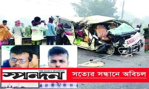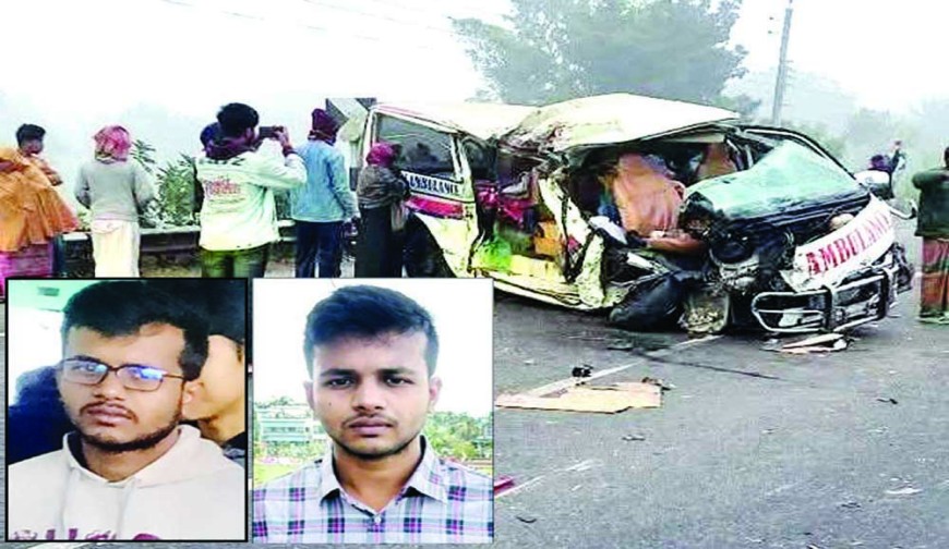 রাজগঞ্জ প্রতিনিধি : ফরিদপুরের ভাঙ্গায় ট্রাক ও অ্যাম্বুলেন্সের মুখোমুখি সংঘর্ষে একই পরিবারের তিনজন নিহত হয়েছেন। আহত হয়েছেন দুইজন। শনিবার (২৭ ডিসেম্বর) সকাল সাতটার দিকে ভাঙ্গা উপজেলার হামিরদী ইউনিয়নের মুনসুরাবাদ বাসস্ট্যান্ড এলাকায় ভাঙ্গা হাইওয়ে সড়কে এ দুর্ঘটনা ঘটে। নিহতরা হলেন- যশোরের মণিরামপুর উপজেলার রাজগঞ্জের হানুয়ার গ্রামের শ্রমজীবী মোঃ রহমতুল্লাহর ছেলে সাকিবুর রহমান নিশান (২৩), মেয়ে রুকাইয়া আক্তার নীলা (৩২) এবং জামাতা কেশবপুর উপজেলার চালতীবাড়ী গ্রামের বাবর আলীর ছেলে মিজানুর রহমান (৪০)। মিজানুর রহমান একটি আরআরএফ এনজিওর ফরিদপুরের মধুখালি শাখার ব্যবস্থাপক ছিলেন। আহত হয়েছেন-নিহত মিজানুর রহমানের বোন বিউটি বেগম (৩০) ও অ্যাম্বুলেন্স চালক কৃষ্ণপদ দাস (৫৫)। ভাঙ্গা হাইওয়ে পুলিশ জানায়- শনিবার সকালে যশোর থেকে ছেড়ে আসা একটি অ্যাম্বুলেন্স ঢাকার দিকে যাচ্ছিল। এতে চালকসহ পাঁচজন যাত্রী ছিলেন। এর মধ্যে মিজানুর রহমান অসুস্থ ছিলেন। হাজী অ্যাম্বুলেন্স সার্ভিস নামের ওই অ্যাম্বুলেন্সটি মুনসুরাবাদ এলাকায় পৌঁছালে ঢাকার দিক থেকে আসা একটি ট্রাকের সঙ্গে মুখোমুখি সংঘর্ষ হয়। এর ফলে অ্যাম্বুলেন্সের সামনের অংশ ব্যাপকভাবে ক্ষতিগ্রস্ত হয়। ঘটনাস্থলেই অ্যাম্বুলেন্সের তিন যাত্রী নিহত ও চালকসহ দুজন আহত হন। আহত ব্যক্তিদের উদ্ধার করে ফরিদপুর মেডিকেল কলেজ হাসপাতালে নেওয়া হয়েছে। ট্রাক রেখে, পালিয়ে গেছে ট্রাক চালক। ভাঙ্গা হাইওয়ে পুলিশের ভারপ্রাপ্ত কর্মকর্তা (ওসি) মো. হেলাল উদ্দিন বলেন- ঘন কুয়াশার কারণে এ ঘটনা ঘটে থাকতে পারে। পলাতক ট্রাক চালককে আইনের আওতায় আনার চেষ্টা করছেন তিনি। পাশাপাশি দুর্ঘটনাকবলিত অ্যাম্বুলেন্স ও ট্রাক হাইওয়ে থানায় এনে রাখা হয়েছে। এদিকে, এদিন বিকাল ৪টার পর মণিরামপুর উপজেলার রাজগঞ্জের ঝাঁপা ইউনিয়ন পরিষদ মাঠে অ্যাম্বুলেন্সে করে তিনটি লাশ আনার পর হাজার হাজার মানুষ তাদের একনজর দেখতে আসে এবং মাগরিব বাদ রাজগঞ্জ কেন্দ্রীয় ঈদগাহ ময়দানে তিনজনের জানাজা অনুষ্ঠিত হয়। অনুষ্ঠিত জানাজায় বিভিন্ন শ্রেণিপেশার হাজার হাজার মানুষ অংশ নেন। এরপর নিশানকে রাজগঞ্জে পারিবারিক কবরস্থানে এবং নিশানের বোন এবং বোনাইকে কেশবপুর চালতিবাড়ি গ্রামের পারিবারিক কবরস্থানে দাফন করা হয়। একই পরিবারের তিন তাজা প্রাণ নিহত হওয়ার ঘটনায় রাজগঞ্জ এলাকায় চলছে শোকের মাতম। স্বজনদের আহাজারিতে এলাকা ভারি হয়ে উঠেছে।