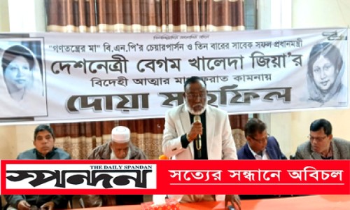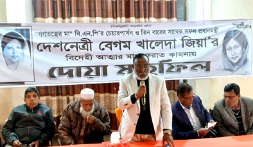 উৎপল বিশ্বাস, নেহালপুর : মণিরামপুরের মশিয়াহাটী কলেজে বিএনপির চেয়ারপার্সন ও তিনবারের প্রধানমন্ত্রী বেগম খালেদা জিয়ার বিদেহি আত্মার মাগফেরাত কামনায় বুধবার দোয়া মাহফিল অনুষ্ঠিত হয়েছে। মশিয়াহাটী ডিগ্রী কলেজের আয়োজনে কলেজের অডিটোরিয়ামে আয়োজিত অনুষ্ঠানে প্রধান অতিথি ছিলেন কলেজ পরিচালনা পর্ষদের সভাপতি ও উপজেলা বিএনপির সভাপতি অ্যাডভোকেট শহীদ মোঃ ইকবাল হোসেন। প্রধান অতিথি বেগম খালেদা জিয়ার প্রতি শ্রদ্ধা জানিয়ে তার বক্তব্যে বলেন, আগামী জাতীয় সংসদ নির্বাচনে তিনি যশোর-৫ আসনের স্বতন্ত্র প্রার্থী হিসাবে নির্বাচনে অংশ নিচ্ছেন। ফলে প্রচারণা শুরু হওয়ার আগেই তাকে কলেজ সভাপতি পদ থেকে পদত্যাগ করতে হবে। সেমোতাবেক কলেজ স্টাফ ও অভিভাবকদের সাথে এটাই শেষ মিটিং। সভাপতি হিসাবে তার কার্যক্রম তুলে ধরে তিনি সকলকে কলেজের সার্বিক উন্নয়নে সহযোগিতা করার আহ্বান জানান। উক্ত দোয়া ও প্রার্থনা অনুষ্ঠানে উপস্থিত ছিলেন মশিয়াহাটী কলেজ অধ্যক্ষ বিপ্লব বিশ্বাস, সাবেক অধ্যক্ষ মনিশান্ত মন্ডল, সাবেক ভারপ্রাপ্ত অধ্যক্ষ মোঃ ফিরোজ উদ্দিন, উপজেলা বিএনপি’র যুগ্ম সম্পাদক মোঃ নাজমুল হক লিটন, কুলটিয়া ইউনিয়ন বিএনপি’র সভাপতি মোঃ হামিদুল ইসলাম, বর্ষীয়াণ বিএনপি নেতা পরিতোষ বিশ্বাস, অবসরপ্রাপ্ত ব্যাংক কর্মকর্তা তুষার কান্তি সরকারসহ এলাকার বিশিষ্ট ব্যক্তিবর্গ।