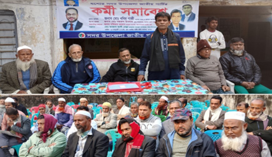 নিজস্ব প্রতিবেদক : যশোর সদর উপজেলা জাতীয় পার্টির উদ্যোগে কর্মী সমাবেশ অনুষ্ঠিত হয়েছে। বৃহস্পতিবার বিকেলে জেলা জাতীয় পার্টির কার্যালয়ে এ সমাবেশ অনুষ্ঠিত হয়। প্রধান অতিথি ছিলেন যশোর সদর আসনের জাতীয় পার্টির মনোনীত প্রার্থী খবির গাজী। বিশেষ অতিথি ছিলেন যশোর জেলা জাতীয় পার্টির যুগ্ম আহ্বায়ক নজরুল ইসলাম। সদর উপজেলা জাতীয় পার্টির ভারপ্রাপ্ত সভাপতি শফিয়ার রহমান সমাবেশে সভাপতিত্ব করেন। উপস্থিত ছিলেন জেলা জাতীয় পার্টির সাবেক সাধারণ সম্পাদক মিনাজুর আবেদিন, জেলা সদস্য সেকেন্দার আলী, সদর উপজেলা জাতীয় পার্টির ভারপ্রাপ্ত সাধারণ সম্পাদক আব্বাস আলী মোল্লা, আরবপুর ইউনিয়ন জাতীয় পার্টির সাধারণ সম্পাদক রফিকুল ইসলাম, রামনগর ইউনিয়নের সভাপতি শাহীন আলম, দেয়াড়া ইউনিয়নের লাল্টু হোসেন, লেবুতলা ইউনিয়নের সাধারণ সম্পাদক আব্দুর রাজ্জাক, কাশিমপুর ইউনিয়নের মো. নান্নু, নওয়াপাড়া ইউনিয়নের সাধারণ সম্পাদক আব্দুর রহমান, কচুয়া ইউনিয়নের সাধারণ সম্পাদক ইদ্রিস আলী, ফতেপুর ইউনিয়নের আহ্বায়ক আবু কায়েস এবং চুড়ামনকাঠি ইউনিয়নের সভাপতি গোলাম মোস্তফা। সমাবেশটি সঞ্চালনা করেন জেলা জাতীয় পার্টির দপ্তর সম্পাদক মনিরুজ্জামান হিরন। সভায় আসন্ন জাতীয় সংসদ নির্বাচনকে সামনে রেখে বিভিন্ন কর্মপরিকল্পনা গ্রহণ করা হয়। যশোর সদর আসনে জাতীয় পার্টির প্রার্থীর পক্ষে ঐক্যবদ্ধভাবে কাজ করার অঙ্গীকার করেন নেতাকর্মীরা। একই সঙ্গে ভোটারদের বাড়ি বাড়ি গিয়ে প্রচারণা চালানো এবং ভোট প্রার্থনার বিষয়ে গুরুত্বারোপ করা হয়।