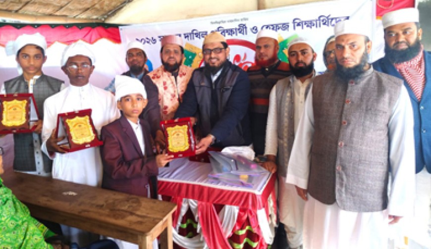 নিজস্ব প্রতিবেদক: যশোর উপশহর প্রগতি আদর্শ মাদ্রাসার ২০২৬ সালের দাখিল পরীক্ষার্থী ও হেফজ শিক্ষার্থীদের বিদায় সংবর্ধনা ও দোয়া অনুষ্ঠান বৃহস্পতিবার দুপুর ১২টায় মাদ্রাসার হলরুমে অনুষ্ঠিত হয়। প্রধান অতিথি হিসেবে মাদ্রাসার সভাপতি মাওলানা তৌহিদুর রহমান বিদায়ীদের হাতে ক্রেস্ট তুলে দেন। বিশেষ অতিথি ছিলেন মাদ্রাসার ম্যানেজিং কমিটির সহ-সভাপতি মুন্সি নাজমুল হোসেন। হেফজ বিভাগের পৃষ্ঠপোষক মাওলানা ওবায়দুল্লাহর সভাপতিত্বে উপস্থিত ছিলেন মাদ্রাসার ম্যানেজিং কমিটির সদস্য ইঞ্জিনিয়ার মাহফুজুর রহমান, আলমগীর হোসাইন, বাবলুর রহমান প্রমুখ অনুষ্ঠান পরিচালনা করেন মাদ্রাসার ভাইস প্রিন্সিপাল হেলাল আল মামুন। অনুষ্ঠানে ৭ পরীক্ষার্থীকে বিদায় সংবর্ধনা জানানো হয়।