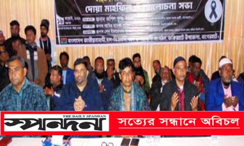 ফকিরহাট (বাগেরহাট) প্রতিনিধি: বাগেরহাটের ফকিরহাট উপজেলা বিএনপি ও সকল অঙ্গ সংগঠনের উদ্যোগে তিনবারের সাবেক সফল প্রধানমন্ত্রী মরহুমা বেগম খালেদা জিয়ার রুহের মাগফিরাত কামনা করে দোয়া মাহফিল ও স্বরণসভা অনুষ্ঠিত হয়েছে। শুক্রবার বিকেল ৫টায় মুলঘর সরকারি উচ্চ বিদ্যালয় মাঠে এই দোয়া অনুষ্ঠানের আয়োজন করা হয়। উপজেলা বিএনপি নেতা শেখ ইফতেখার আহেম্মদ পলাশের সভাপতিত্বে অনুষ্ঠানে প্রধান অতিথি ছিলেন বাগেরহাট-১ আসনের বিএনপি মনোনিত প্রার্থী কপিল কৃষ্ণ মন্ডল। প্রধান বক্তা ছিলেন ইভেন্ট ও প্রকাশনা উপ-কমিটি এবং বিএনপির রিসার্স সেলের আহবায়ক আমীর আমজা শাথিল। উপজেলা স্বেচ্ছাসেবকদলের আহবায়ক কাজি মইন উদ্দিন মেরুর সঞ্চালনায় এতে আরো বক্তব্য রাখেন বিএনপি নেতা মোড়ল কামরুজ্জামান, উপজেলা যুবদলের ভারপ্রাপ্ত আহবায়ক মোল্লা রাজু আহেম্মদ, সদস্য সচিব শেখ দেলোয়ার হোসেন। অনুষ্ঠানে অন্যদের মধ্যে উপস্থিত ছিলেন বিএনপি নেতা আলমগীর কবির, বিশিষ্ট সমাজসেবক আমীন উল্লাহ বাবলা, ইউনিয়ন বিএনপি নেতা আব্দুল হাই ফারাজী, শেখ শরিফুল ইসলাম, অ্যাড: মাসুম বিল্লাহ, মুক্তাদির হোসেন, রবিউল ইসলাম, আবু সুফিয়ান ও মিরাজুল ইসলাম রাজসহ বিভিন্ন নেতৃবৃন্দ। দোয়া পরিচালনা করেন খতিব হাফেজ মো: মনিরুল ইসলাম মন্টু। অপরদিকে, একই দিন দুপুরে উপজেলা বিএনপি ও সকল সহযোগী সংগঠনের আয়োজনে ডাকবাংলাস্থ দলীয় কার্যালয় চত্বরে অনুরূপ দোয়া মাহফিল অনুষ্ঠিত হয়। এতে প্রধান অতিথি ছিলেন বাগেরহাট-১ আসনের বিএনপি মনোনীত ধানের শীষ প্রতীকের প্রার্থী কপিল কৃষ্ণ মন্ডল। এতে আরো উপস্থিত ছিলেন, উপজেলা বিএনপি’র সভাপতি শেখ কামরুল ইসলাম গোরা, সাংগঠনিক সম্পাদক খান লিয়াকত আলী, নোমান আল মেহেদী, বিএনপি নেতা কবির হোসেন, জেলা স্বেচ্ছাসেবক দলের সাবেক যুগ্ম আহবায়ক এম এ সালাম, কৃষকদল নেতা আউব চৌধুরী, যুবদল নেতা রফিকুল ইসলাম প্রমুখ।