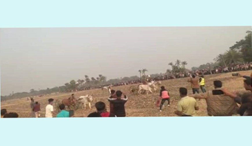 নিজস্ব প্রতিবেদক : শনিবার যশোর সদর উপজেলার কুতুবপুর গ্রামের মাঠে ঐতিহ্যবাহী গরুর গাড়ি দৌড় প্রতিযোগিতা অনুষ্ঠিত হয়। আয়োজন করে কুতুবপুর,জলকার, জয়রামপুরের যুবসমাজ। গরুর গাড়ি দৌড় প্রতিযোগিতা অনুষ্ঠানে প্রধান অতিথি ছিলেন জেলা প্রশাসকের কার্যালয়ের সহকারী কমিশনার ও এক্সিকিউটিভ ম্যাজিস্ট্রেট মোঃ শামিউল আলম। বিশেষ অতিথি ছিলেন রূপালী ব্যাংক পিএলসির এ.জি.এম, মো: শহীদুল ইসলাম। যুবসমাজের পক্ষ থেকে সার্বিক সহযোগিতা ও সভাপতিত্ব করেন এলাকার কৃতি সন্তান সুয়াইব হুসাইন। প্রতিযোগিতায় অংশগ্রহণ করে মোট ২৪ টি দল, প্রতিযোগিতা শেষে পুরস্কার বিতরণী অনুষ্ঠান হয়। সর্বমোট ছয়টি পুরস্কার দেয়া হয়। পুরস্কার হিসেবে আয়োজকরা প্রদান করেন তিনটা বাটন মোবাইল ও তিনটা বাইসাইকেল। প্রথম পুরস্কার পান লেবুতলা গ্রামের সবেদ আলী, দ্বিতীয় পুরস্কার পান রহিমপুর গ্রামের আশরাফুল ইসলাম, তৃতীয় পুরস্কার পান ঘাটখালীর অলিদ।