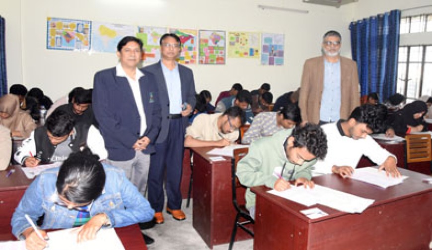 খুলনা প্রতিনিধি: খুলনা বিশ্ববিদ্যালয় উপকেন্দ্রে রাজশাহী বিশ্ববিদ্যালয়ের ২০২৫-২০২৬ শিক্ষাবর্ষে স্নাতক/স্নাতক (সম্মান) প্রথম বর্ষের ‘বি’ ইউনিটের ভর্তি পরীক্ষা শনিবার সুষ্ঠু ও শান্তিপূর্ণভাবে অনুষ্ঠিত হয়েছে। বেলা ১১টা থেকে ১২টা পর্যন্ত এই ভর্তি পরীক্ষা গ্রহণ করা হয়। মোট ২ হাজার ৬৪১ পরীক্ষার্থীর মধ্যে উপস্থিতির হার ছিলো প্রায় ৯২%। এদিকে পরীক্ষা চলাকালে খুলনা বিশ্ববিদ্যালয়ের উপ-উপাচার্য প্রফেসর ড. মোঃ হারুনর রশীদ খান ও ট্রেজারার প্রফেসর ড. মোঃ নূরুন্নবী পরীক্ষা কেন্দ্রের হলরুম ও কন্ট্রোল রুমসমূহ পরিদর্শন করেন এবং সার্বিক বিষয়ে খোঁজ-খবর নেন। এ সময় তাঁরা পরীক্ষার সুষ্ঠু ও শান্তিপূর্ণ পরিবেশ দেখে সন্তোষ প্রকাশ করেন। পরিদর্শনকালে ভর্তি পরীক্ষার ফোকাল পয়েন্ট ও ছাত্র বিষয়ক পরিচালক প্রফেসর ড. মোঃ নাজমুস সাদাত এবং সংশ্লিষ্ট শিক্ষক-কর্মকর্তারা উপস্থিত ছিলেন। এছাড়া কন্ট্রোল রুম ও পরীক্ষা কেন্দ্রের দায়িত্বে থাকা বিভিন্ন স্কুলের ডিন, ডিসিপ্লিন প্রধান, শিক্ষক এবং কর্মকর্তা-কর্মচারীবৃন্দ উপস্থিত ছিলেন।