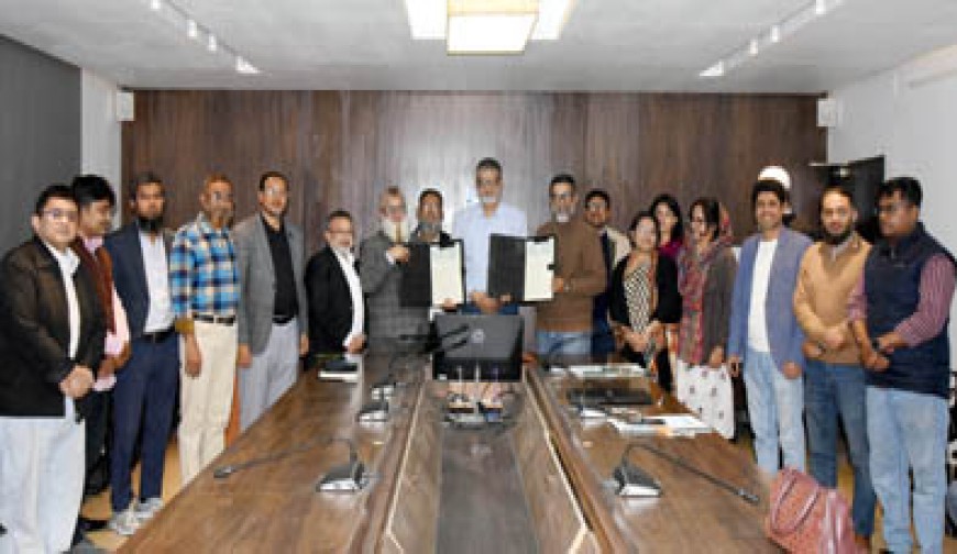 খুলনা প্রতিনিধি: খুলনা বিশ্ববিদ্যালয়ের ব্যবসায় প্রশাসন (বিএ) ডিসিপ্লিন এবং হিউম্যান রিসোর্স ম্যানেজমেন্ট (এইচআরএম) ডিসিপ্লিনের সঙ্গে দি ইনস্টিটিউট অব কস্ট অ্যান্ড ম্যানেজমেন্ট অ্যাকাউন্টস অব বাংলাদেশ (আইসিএমএবি)-এর পৃথক দুটি সমঝোতা স্মারক (এমওইউ) সাক্ষরিত হয়েছে। রোববার বেলা ১১টায় বিশ্ববিদ্যালয়ের প্রশাসনিক ভবনের সভাকক্ষে এ সমঝোতা স্মারক স্বাক্ষর অনুষ্ঠিত হয়। এমওইউতে খুলনা বিশ্ববিদ্যালয়ের পক্ষে ট্রেজারার প্রফেসর ড. মোঃ নূরুন্নবী এবং আইসিএমএবির পক্ষে ভাইস-প্রেসিডেন্ট এস এম জহির উদ্দিন হায়দার স্বাক্ষর করেন। পরে উভয় পক্ষের মধ্যে সমঝোতা স্মারক বিনিময় করা হয়। অনুষ্ঠানে আরও বক্তব্য রাখেন খুলনা বিশ্ববিদ্যালয়ের ব্যবস্থাপনা ও ব্যবসায় প্রশাসন স্কুলের ডিন প্রফেসর ড. রুমানা হক, ব্যবসায় প্রশাসন ডিসিপ্লিনের প্রধান প্রফেসর ড. মোঃ নূর আলম, প্রফেসর শেখ মাহমুদুল হাসান, এইচআরএম ডিসিপ্লিনের প্রধান মোঃ মেহেদী হাসান, আইসিএমএবির ভাইস-প্রেসিডেন্ট এস এম জহির উদ্দিন হায়দার, সাবেক প্রেসিডেন্ট প্রফেসর ড. মোঃ সেলিম উদ্দিন এবং খুলনা ব্রাঞ্চের চেয়ারম্যান আজিজুর রহমান। অনুষ্ঠান সঞ্চালনা করেন ব্যবসায় প্রশাসন ডিসিপ্লিনের সহযোগী অধ্যাপক মোঃ এনামুল হক। এ সময় দুই ডিসিপ্লিনের শিক্ষকবৃন্দ এবং আইসিএমএবির কর্মকর্তারা উপস্থিত ছিলেন।