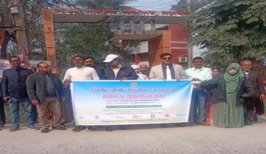 নড়াইল পৌর প্রতিনিধি: ‘কুষ্ঠরোগ নিরাময়যোগ্য, সামাজিক কুসংস্কার প্রকৃত বাধা’ এই প্রতিপাদ্য নিয়ে নড়াইলে বিশ্ব কুষ্ঠ দিবস-২০২৬ পালিত হয়েছে। রোববার (২৫ জানুয়ারি) বেলা ১১ টায় এ দিবস উপলক্ষে সিভিল সার্জন কার্যালয় থেকে একটি র্যালি বের হয়ে শহরের প্রধান সড়ক প্রদক্ষিণ করে একই স্থানে এসে শেষ হয়। পরে সিভিল সার্জন কার্যালয়ের হলরুমে আলোচনা সভা অনুষ্ঠিত হয়। সভায় সিভিল সার্জন ডা. মো. আব্দুর রশীদের সভাপতিত্বে আরো উপস্থিত ছিলেন নড়াইল সদর উপজেলা স্বাস্থ্য ও পরিবার কল্যান কর্মকর্তা ডা. রাজিব সরদার, সিভিল সার্জন কার্যালয়ের মেডিকেল অফিসার ডা. ইসমাইল হোসেন বাপ্পি, সিভিল সার্জন কার্যালয়ের জেলা স্বাস্থ্য তত্বাবধায়ক দুলাল চন্দ্র গাইন, (টিবি ও কুষ্ঠ রোগ) বিষয়ক জেলা ম্যানেজার শিউলী পারভিন, স্বাস্থ্য সহকারীবৃন্দ, এনজিও প্রতিনিধি, মিডিয়াকর্মীরা। আলোচনা সভায় বক্তারা, কুষ্ঠ রোগের বিভিন্ন দিক নিয়ে আলোচনা করেন। সভায় জানানো হয়, ২০১৩ সালের পর নড়াইল জেলায় কোন কুষ্ঠ রোগী শনাক্ত হয়নিনি।