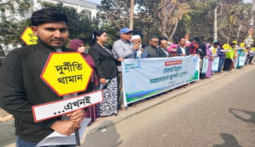 নিজস্ব প্রতিবেদক: টেকসই উন্নয়ন নিশ্চিত করতে নবায়নযোগ্য জ্বালানির প্রসার এবং সরকারি-বেসরকারি খাতে সুশাসন প্রতিষ্ঠার দাবিতে যশোরে মানববন্ধন অনুষ্ঠিত হয়েছে। সোমবার দুপুর ১২টায় সচেতন নাগরিক কমিটি (সনাক) যশোরের উদ্যোগে প্রেসক্লাব যশোরের সামনে এ কর্মসূচি পালিত হয়। সনাক যশোরের সভাপতি প্রফেসর শাহীন ইকবালের নেতৃত্বে মানববন্ধনে সংগঠনের নেতাকর্মীরা ‘দুর্নীতি থামান’, ‘স্বচ্ছতা নিশ্চিত করুন’ এবং ‘নবায়নযোগ্য জ্বালানি ব্যবহার বাড়ান’ সংবলিত বিভিন্ন প্ল্যাকার্ড হাতে অংশ নেন। বক্তারা বলেন, জলবায়ু পরিবর্তনের ঝুঁকি মোকাবিলা এবং দেশের জ্বালানি নিরাপত্তা নিশ্চিত করতে জীবাশ্ম জ্বালানির ওপর নির্ভরতা কমিয়ে সৌর ও বায়ুশক্তির মতো পরিবেশবান্ধব উৎসগুলোর দিকে নজর দেওয়া জরুরি। মানববন্ধনে সচেতন নাগরিক কমিটির সদস্যবৃন্দ, স্থানীয় বিভিন্ন সামাজিক সংগঠনের প্রতিনিধি এবং সাধারণ নাগরিকরা সংহতি প্রকাশ করে অংশ নেন।