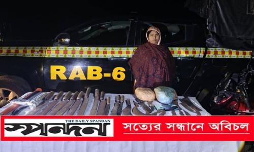 ঝিনাইদহ প্রতিনিধি : ঝিনাইদহের হরিণাকুন্ডুতে মাদক ও বিপুল সংখ্যক দেশীয় অস্ত্রসহ তাছলিমা আক্তার (৩৫) নামে এক নারীকে গ্রেফতার করেছে র্যাব-৬। বুধবার রাত ১টার দিকে হরিণাকুন্ড পৌরসভার চটকাবাড়িয়া গ্রামের নিজ বাড়ী থেকে তাকে আটক করা হয়। হরিণাকুণ্ডু থানার ওসি (তদন্ত) অসিত কুমার রায় এ তথ্য নিশ্চিত করেছেন। গ্রেফতারকৃত তাছলিমা আক্তার ওই গ্রামের হোসেন আলীর স্ত্রী।