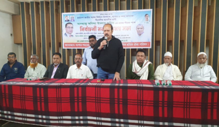 নিজস্ব প্রতিবেদক: ত্রয়োদশ জাতীয় সংসদ নির্বাচনে যশোর-৩ সদর আসনে ধানের শীষ প্রতীকের প্রার্থী অনিন্দ্য ইসলাম অমিতকে ভোট দেয়ার আহবান জানিয়েছেন প্রেসক্লাব যশোরের সভাপতি জাহিদ হাসান টুকুন। অমিতের পক্ষে মতবিনিময় সভা দুপুরে প্রেসক্লাব যশোরের গোলাম মাজেদ অডিটোরিয়ামে অনুষ্ঠিত হয়। যশোর জেলা অটো রিকসা ও-ভ্যান মালিক ও শ্রমিক ঐক্যপরিষদের উদ্যোগে আয়োজিত এই মতবিনিময় সভায় প্রধান অতিথির বক্তব্যে তিনি এ আহবান জানান। যশোর জেলা রিকসা ভ্যান শ্রমিক ইউনিয়নের সভাপতি আবুল হাসেমের সভাপতিত্বে মতবিনিময় সভায় বিশেষ অতিথি ছিলেন বাংলাদেশ জাতীয়তাবাদী শ্রমিক দলের জেলা শাখার ভারপ্রাপ্ত সভাপতি আবু জাফর ও সাধারণ সম্পাদক শাহাবুদ্দিন আহম্মেদ। অন্যান্যের মধ্যে বক্তৃতা করেন যশোর ইন্সটিটিউটের নাট্যকলা সংসদের সাধারণ সম্পাদক আব্দুর রহমান কিনা ও জেলা রিকসা ভ্যান শ্রমিক সমিতির সাবেক সভাপতি আমজাদ হোসেন। আগামী ১২ ফেব্রুয়ারির নির্বাচনে দলমত নির্বিশেষে ধানের শীষ প্রতীকের প্রার্থী অনিন্দ্য ইসলাম অমিতকে ভোট দেয়ার আহবান জানান টুকুন। সভায় যশোর শহরের অটো রিকসা-ভ্যান শ্রমিক ও মালিক ঐক্যপরিষদের কয়েকশ’ সদস্য উপস্থিত ছিলেন।