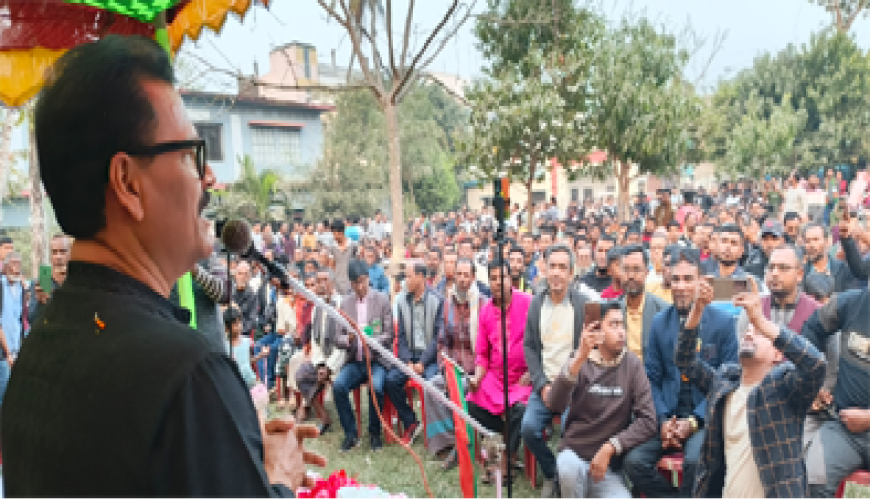 কলারোয়া(সাতক্ষীরা) প্রতিনিধি: ১২ ফেব্রুয়ারি অনুষ্ঠেয় জাতীয় সংসদ নির্বাচনে সাতক্ষীরা-১ সংসদীয় আসনের বিএনপি মনোনীত ধানের শীষ প্রতীকের প্রার্থী ও সাবেক সংসদ সদস্য হাবিবুল ইসলাম হাবিব বলেছেন, মানুষের অধিকার প্রতিষ্ঠার জন্য বিএনপি সংগ্রাম করে আসছে। জীবন মানের উন্নয়নের জন্য ধানের শীষে ভোট প্রার্থনা করে তিনি বলেন, প্রতিটি মানুষের কর্মসংস্থান, বাসস্থান, কৃষক কার্ড, ফ্যামিলি কার্ডসহ সব ধরনের নাগরিক সুবিধা ও নিরাপত্তা বিধানে বিএনপি প্রতিশ্রুতিবদ্ধ। ধানের শীষে ভোট দিয়ে আপনার গণতান্ত্রিক অধিকারকে সুপ্রতিষ্ঠিত করুন। দেশকে উন্নয়ন ও অগ্রগতির শীর্ষে নিয়ে যান। বুধবার বিকেলে কলারোয়া সরকারি প্রাইমারি স্কুল ময়দানে পৌর বিএনপি আয়োজিত নির্বাচনি জনসভায় তিনি প্রধান অতিথির বক্তব্যে এ কথাগুলো বলেন। পৌর বিএনপির সাংগঠনিক সম্পাদক গোলাম রসুলের সঞ্চালনায় বক্তব্য রাখেন ও উপস্থিত ছিলেন কলারোয়া উপজেলা বিএনপির সহ-সভাপতি সাবেক অধ্যক্ষ রইছ উদ্দিন, সাধারণ সম্পাদক ও সাবেক ইউপি চেয়ারম্যান আব্দুর রকিব মোল্লা, পৌর বিএনপির সাধারণ সম্পাদক শেখ শরিফুজ্জামান তুহিন, উপজেলা বিএনপির যুগ্ম সাধারণ সম্পাদক শেখ আব্দুল কাদের বাচ্চু প্রমুখ।