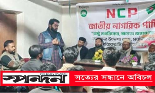ফুলতলা (খুলনা) প্রতিনিধি: ফুলতলায় জাতীয় নাগরিক পার্টি (এনসিপি) এক কর্মীসভা বুধবার বিকালে স্থানীয় দলীয় কার্যালয়ে মোঃ জোনাঈদ খানের সভাপতিত্বে অনুষ্ঠিত হয়। অনুষ্ঠানে প্রধান অতিথি ছিলেন বাংলাদেশ জামায়াতে ইসলামী উপজেলা নায়েবে আমির শেখ ওবায়েদুল্লাহ। বিশেষ অতিথি ছিলেন রাজশাহী হল সংসদের ভিপি আহম্মেদ আহসানুল্লাহ ফারহান, ছাত্র শিবিরের খুলনা জেলা প্রকাশনী সম্পাদক হুসাইন আহমেদ। সীমান্ত হোসেন সুজনের পরিচালনায় অন্যান্যের মধ্যে উপস্থিত ছিলেন এনসিপি নেতা মোঃ ফাহাদুজ্জামান, এজাজ মাহমুদ নূর, জে এইচ সজীব, মোঃ তালিব, মোঃ তুহিন সরদার, মোঃ সজীব হোসেন, মোঃ আকিব, রোহান শেখ, মোঃ আসাদুল শেখ, খাব্বার খন্দকার প্রমুখ।