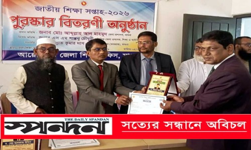 শ্রীপুর (মাগুরা) প্রতিনিধি : টানা ষষ্ঠ বারের মতো মাগুরা জেলা ও শ্রীপুর উপজেলার শ্রেষ্ঠ কলেজ শিক্ষক নির্বাচিত হয়েছে ড. মুসাফির নজরুল (নজরুল ইসলাম)। বৃহস্পতিবার সকালে জেলা শিক্ষা অফিসের সম্মেলন কক্ষে মাগুরা সরকারি হোসেন শহীদ সোহরাওয়ার্দী কলেজের অধ্যক্ষ ড. মোঃ আলফাজ উদ্দিন প্রধান অতিথি হিসেবে জাতীয় শিক্ষা সপ্তাহ -২০২৬ উপলক্ষে এক আড়ম্বরপূর্ণ অনুষ্ঠানের মাধ্যমে তার হাতে ক্রেস্ট ও সার্টিফিকেট তুলে দেন।