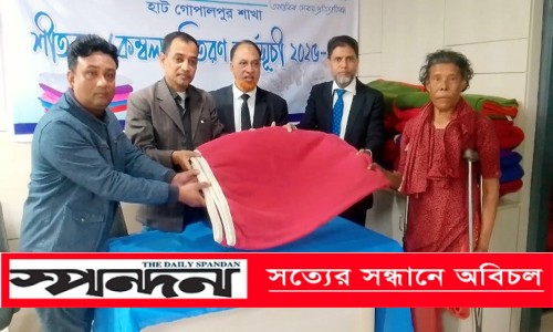 এ সময় ব্যাংকের ব্যবস্থাপক চৌধুরী নিয়াজ মোর্শেদ, অ্যাডভোকেট আবদুর রশিদ, এসএটিভির জেলা প্রতিনিধি ফয়সাল আহমেদ, ব্যাংক কর্মকর্তা নবীর হোসেন, হাটগোপালপুর পুলিশ ক্যাম্পের এএসআই মাজহারুল ইসলাম, জেলা শ্রমিক দলের সাংগঠনিক সম্পাদক মশিয়ার রহমান, বিশিষ্ট ব্যবসায়ী মহিউদ্দিন টিটু, আরব আলী, লাভলু মিয়া, আলম জোয়ার্দার, মুর্শিদসহ ব্যাংকের কর্মকর্তা-কর্মচারীরা উপস্থিত ছিলেন। শীতবস্ত্র পেয়ে অসহায় মানুষগুলো সন্তুষ্টি প্রকাশ করেন।