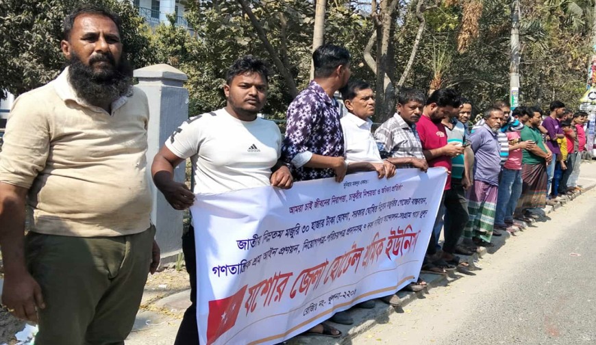 রোববার বেলা ১২টায় হোটেল রেস্তোরা সেক্টরে সরকার ঘোষিত নিম্নতম মজুরি ও শ্রম আইন বাস্তবায়ন সংগ্রাম পরিষদের আহ্বানে এ বিক্ষোভ মিছিল বের হয়। পাইপপট্টি মোড় থেকে শহর প্রদক্ষিণ করে যশোর প্রেসক্লাবের সামনে সংক্ষিপ্ত সমাবেশ করে। হোটেল রেস্তোরা সেক্টরে সরকার ঘোষিত নিম্নতম মজুরি ও শ্রম আইন বাস্তবায়ন সংগ্রাম পরিষদ-এর যশোর জেলা আহ্বায়ক কামাল পারভেজ বুলুর সভাপতিত্বে সমাবেশে বক্তব্য রাখেন বাংলাদেশ ট্রেড ইউনিয়ন সংঘের জেলা সভাপতি আশুতোষ বিশ্বাস, সংগ্রাম কমিটির যুগ্ম-আহ্বায়ক আইয়ুব হোসেন ও রাজু আহমেদ প্রমুখ।