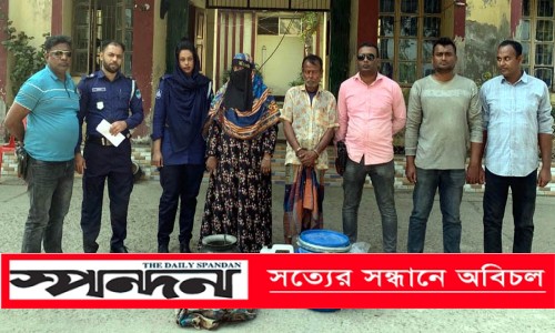 আশাশুনি প্রতিনিধি : আশাশুনিতে পুলিশের অভিযানে ১০লিটার চোলাই মদ ও মদ তৈরিতে ব্যবহৃত ৩০লিটার চিটাগুর মিশ্রিত পানি ও মদ তৈরিতে করার পাতিল, ড্রামসহ দুই জনকে গ্রেফতার করা হয়েছে। সোমবার দুপুরে আশাশুনি থানার অফিসার ইনচার্জ শামীম আহমদ খানের নির্দেশনায় অভিযান পরিচালনা করেন এএস আই আরিফ, এএসআই ইব্রাহিম, এসআই ফয়সাল আহমেদ। অভিযান পরিচালনাকালে গোপন সংবাদের ভিত্তিতে খাজরা ইউনিয়নের খাজরা পূর্বপাড়াস্থ গ্রামে মৃত আইজ উদ্দিন খাঁ এর ছেলে বিল্লাল হোসেন খাঁ (৫৫) ও তার ভাবি তৈয়েবুর খাঁ এর স্ত্রী মোসাঃ রিমা সুলতানা (২৪) এর বসত বাড়ির রান্না ঘর হতে ১০ লিটার চোলাই মদ ও মদ তৈরির উপকরণসহ গ্রেফতার করা হয়। এ সময় পুলিশের উপস্থিতি টের পেয়ে তৈয়েবুর খাঁ (৩০) ও বিল্লাল হোসেন খাঁ এর স্ত্রী মোসাঃ তছিরন বেগম (৪৫) কৌশলে পালিয়ে গেছে বলে জানিয়েছেন থানার অফিসার ইনচার্জ।