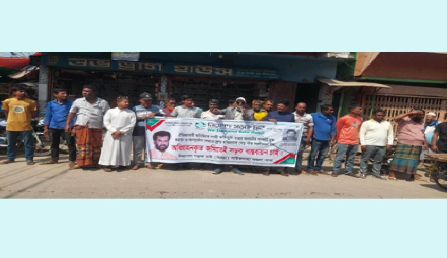 পাইকগাছা (খুলনা) প্রতিনিধি : খুলনার বেতগ্রাম-কয়রা আঞ্চলিক মহাসড়ক উন্নয়ন প্রকল্পের কাজ প্রতিনিয়ত নতুন নতুন সংকটে আটকে যাচ্ছে প্রকল্পের বাঁক সরলীকরণের কাজ। গত ৫ বছরে কয়েক দফায় ব্যায় বরাদ্দের পাশাপাশি মেয়াদ বাড়িয়েও সরলীকরণের কাজ শেষ করা যাচ্ছে না। সর্বশেষ বাঁক সরলীকরণ নিয়ে দক্ষিণের অন্যতম প্রধান বাণিজ্যিক মোকাম কপিলমুনি সদরের ফকিরবাসা মোড় এলাকায় অধিগ্রহনকৃত প্রায় সাড়ে ১১ শতক জমির মালিক ও সওজের মধ্যে সেখানকার নক্সা নিয়ে মতপার্থক্য ও অধিগ্রহণের অর্থ প্রাপ্তি নিয়ে আইনী জটিলতায় আটকে গেছে সেখানকার সরলীকরনের কাজ। এমন পরিস্থিতিতে ২৮ ফেব্রুয়ারি শনিবার সকালে দ্রুত সড়ক সরলীকরণের কাজ এগিয়ে নিতে মানববন্ধন করেছে নিরাপদ সড়ক চাই পাইকগাছা শাখা। শাখা সংগঠনের সভাপতি এইচএম শফিউল ইসলামের সভাপতিত্বে এসময় বক্তব্য রাখেন, মোঃ আসলাম, সাংবাদিক নজরুল ইসলাম, তপন পাল, মহানন্দ অধিকারী মিন্টু, মোঃ ফরিজুল ইসলাম শেখ আতিয়ার রহমান, শ্রমিক নেতা মোঃ ফজর আলী, রিজাউল ইসলাম শেখ আতিয়ার রহমানসহ অনেকে।