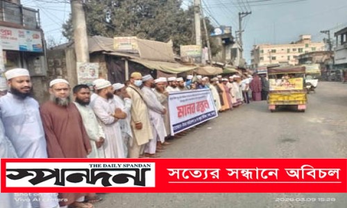 রূপদিয়া (যশোর) প্রতিনিধি : যশোর সদর উপজেলার কচুয়া ইউনিয়নের কচুয়া বিশ্বাসপাড়া জামে মসজিদের পেশ ইমাম মাওলানা সাইফুর রহমানের ওপর হামলার প্রতিবাদে রূপদিয়া বাজারে মানববন্ধন অনুষ্ঠিত হয়েছে। সোমবার বিকেল ৩টায় কচুয়া ও নরেন্দ্রপুর ইউনিয়নের বিভিন্ন মসজিদের ইমাম, মুসল্লি ও স্থানীয় এলাকাবাসীর উদ্যোগে এ মানববন্ধন অনুষ্ঠিত হয়। এতে কয়েক শতাধিক ইমাম, মুসল্লি ও সাধারণ মানুষ অংশ নেন। মানববন্ধনে বক্তব্য দেন রূপদিয়া বাজার কেন্দ্রীয় জামে মসজিদের পেশ ইমাম ও খতিব হাফেজ মাওলানা মুফতি আবুল হাসান নোমান, চাউলিয়া গোডাউন জামে মসজিদের পেশ ইমাম ও খতিব হাফেজ মাওলানা আশরাফুল ইসলাম, সাখারীগাতী কেন্দ্রীয় জামে মসজিদের পেশ ইমাম ও খতিব হাফেজ মাওলানা তরিকুল ইসলাম, ঘোড়াগাছা জামে মসজিদের পেশ ইমাম ও খতিব মিজানুর রহমান, রূপদিয়া বাজার বায়তুস সালাম জামে মসজিদের পেশ ইমাম ও খতিব হাফেজ মাওলানা বাবর আলি, কচুয়া ইউপি জামে মসজিদের পেশ ইমাম ও খতিব মাওলানা জাহাঙ্গীর আলম এবং কচুয়া বিশ্বাসপাড়া জামে মসজিদের খতিব হাফেজ মাওলানা তিতুমীর হুসাইন। এছাড়াও উপস্থিত ছিলেন হাফেজ হাবিবুর রহমান, হাফেজ সোহানুর রহমান, হাফেজ সামিউল ইসলাম, হাফেজ হাবিবুল্লাহ বিলালীসহ আরও অনেক ইমাম ও মুসল্লি। বক্তারা বলেন, পবিত্র রমজান মাসে একজন ইমামের ওপর হামলার ঘটনা অত্যন্ত নিন্দনীয় ও দুঃখজনক। তারা অবিলম্বে হামলার সঙ্গে জড়িত কচুয়া ইউনিয়নের সাবেক ইউপি সদস্য ওলিয়ার রহমান ও তার সহযোগীদের গ্রেপ্তার করে দৃষ্টান্তমূলক শাস্তির দাবি জানান। উল্লেখ্য, রোববার যোহরের নামাজের পর কচুয়া বিশ্বাসপাড়া জামে মসজিদে প্রতিদিনের মতো মক্তবের শিশু শিক্ষার্থীদের ডাক দেওয়াকে কেন্দ্র করে ইমাম মাওলানা সাইফুর রহমানের ওপর হামলার ঘটনা ঘটে।