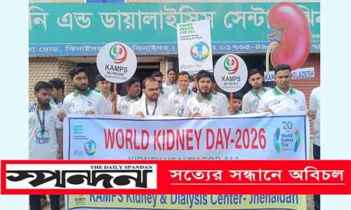 ঝিনাইদহ প্রতিনিধি : ‘সবার জন্য সুস্থ কিডনি-মানুষের যত্নে বাঁচাও ধমণী’ এই প্রতিপাদ্যকে সামনে রেখে ঝিনাইদহে পালিত হয়েছে বিশ্ব কিডনি দিবস।