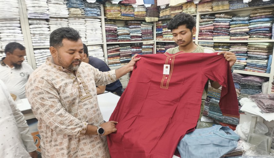 মারুফ কবীর : ঈদ কিংবা,যে কেনো সামাজিক অনুষ্ঠান; পুরুষদের কাছে পাঞ্জাবিই সেরা। বছর জুড়েই নানা উৎসবে পুরুষের পোশাকে পাঞ্জাবির কদর সবার আগে। ঈদের নামাজ ছাড়াও দাওয়াত কিংবা ঘুরাঘুরিতে স্বাচ্ছন্দের পোশাকের তালিকায় এখন পাঞ্জাবি। ব্যবসায়ীরা জানান, এক সময় ঈদে সাদা কিংবা অফ-হোয়াইট পাঞ্জাবির চলন ছিলো। এখন ফ্যাশন ট্রেন্ডে এসেছে পরিবর্তন। ভারি নকশার তুলনায় হালকা কাজ করা পাঞ্জাবির জনপ্রিয়তা বেড়েছে। ফ্যাশন হাউসগুলো তাই হালকা কাজের পাঞ্জাবি কালেকশনে রেখেছে। ভারি কাজ করা পাঞ্জাবি তাই কিছুটা পিছিয়ে পড়েছে। কোনো পাঞ্জাবি হাঁটু ছাড়িয়ে গেছে, কোনটা আবার হাঁটু পর্যন্ত পৌঁছাতে পৌঁছাতেই শেষ হয়ে গেছে। ব্যবসায়ীরা আরও বলেন, রেডিমেটের পাশাপাশি অনেকে পাঞ্জাবি তৈরি করে পরেন। তাই টেইলার্স কারিগরদের পাঞ্জাবি তৈরি করতে ব্যস্ত সময় পার করতে দেখা গেছে। এছাড়া অনেকে অনলাইনে অর্ডার করে কিনছেন পাঞ্জাবি। নেটে বিভিন্ন সাইড স্ক্রল করে, ছবি দেখে পছন্দ করে সিলেক্ট করছেন পছন্দের পাঞ্জাবি। ঈদে শুধু পাঞ্জাবি কিনলেই হয় না,পাঞ্জাবির সঙ্গে চাই মানানসই আনুষঙ্গিক জিনিস। ঈদে পাঞ্জাবির সঙ্গে ট্র্যাডিশনাল পায়জামা অথবা সেমি-ফিটেড ট্রাউজারই বেশ জনপ্রিয়। অনেকেই আবার পাঞ্জাবির সঙ্গে বেছে নিচ্ছেন জিন্স। কালেক্টরেট মসজিদ মার্কেটের পাঞ্জাবি হাউজের প্রোপাইটর আতাউর রহমান বলেন, এবারের ঈদে হালকা কাজের সুতি পাঞ্জাবির চাহিদা বেশি। আরামদায়ক বলে ক্রেতারা এটাই বেছে নিচ্ছেন বলে জানান এ ব্যবসায়ী। জেলা পরিষদ মার্কেটের পোশাক ব্যবসায়ী শেখ ফিরোজ বলেন, রমজান মাসের শুরুতে শীতের একটা আবহ থাকলেও যত দিন গড়াচ্ছে, বাড়ছে তাপমাত্রা। ধারণা করা যাচ্ছে, ঈদের সময়টাতেও রোদ থাকবে চড়া। ফলে ঈদের পাঞ্জাবি হিসেবে সবার পছন্দের তালিকায় থাকছে হালকা রঙের সুতির পাঞ্জাবি। সুতির পাশাপাশি সিল্ক, লিনেন, রেমি কটনের চাহিদাও আছে। পাঞ্জাবি কর্ণারের বিক্রয় কর্মী আরমান বলেন,পবিত্র রমজানের আগে থেকেই ঈদের নতুন পাঞ্জাবি কেনার হিড়িক পড়ে যায়। ফ্যাশন হাউসগুলোর মতে, দুই ঈদেই বিক্রি হয় বছরের প্রায় ৮০ ভাগ পাঞ্জাবি। মুজিব সড়ক ভিআইপি মার্কেটের রুপকথা শোরুমের বিক্রয়কর্মী রুহুল আমিন বলেন, পুরুষদের পাশাপাশি তরুণী ও গৃহিনীরাও পাঞ্জাবি কিনতে আসছেন। আবিদ হাসান নামে এক ক্রেতা বলেন, অন্যান্য পোশাকেরর সাথে ঈদে পুরুষদের কাছে পাঞ্জাবির কদর বেশি। তিনি আরর বলেন, ঈদ,পহেলা বৈশাখসহ বভিন্ন সামাজিক অনুষ্ঠানে পাঞ্জাবি চল বেড়েছে।