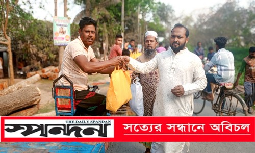 ঝিনাইদহ প্রতিনিধি : ঈদের আনন্দ ভাগাভাগি করে নিতে ঝিনাইদহের শৈলকুপায় শতাধিক ভ্যানচালকের মাঝে ঈদ সামগ্রী বিতরণ করা হয়েছে। সোমবার বিকেলে উপজেলার কাতলাগাড়ী বাজার এলাকায় ‘অবিরাম উন্নয়নে বাংলাদেশ’ সংগঠনের পরিচালক সমাজসেবক ও শিক্ষক উজ্জ্বল আলীর উদ্যোগে এ মানবিক সহায়তা কার্যক্রম অনুষ্ঠিত হয়। এ সময় ভ্যানচালকদের হাতে সেমাই, চিনি, তেল, সাবান, চালসহ ঈদ সামগ্রী তুলে দেওয়া হয়। পবিত্র ঈদুল ফিতরকে সামনে রেখে প্রয়োজনীয় এসব সামগ্রী পেয়ে উপকারভোগীরা সন্তোষ ও কৃতজ্ঞতা প্রকাশ করেন।