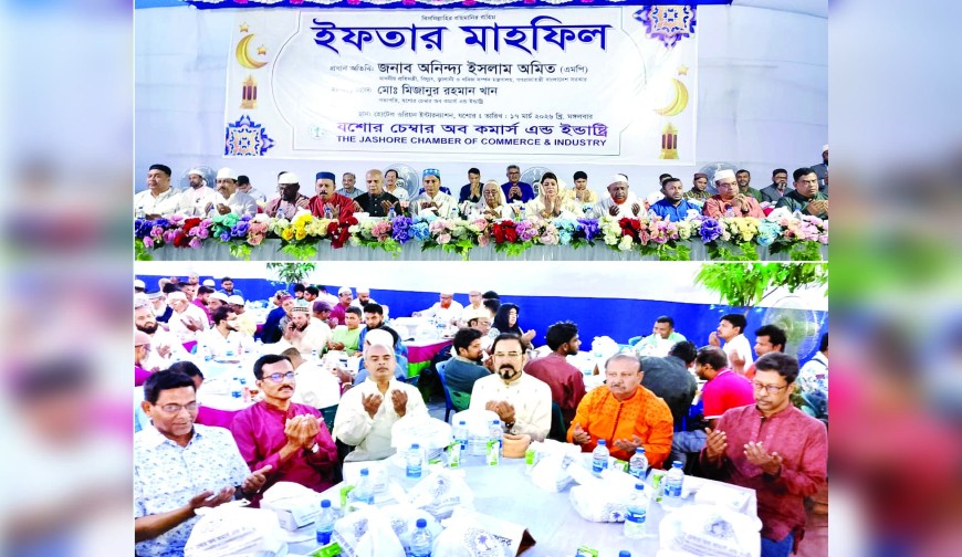 নিজস্ব প্রতিবেদক : যশোর চেম্বার অব কমার্স এন্ড ইন্ডাস্ট্রি’র আয়োজনে ইফতার মাহফিল অনুষ্ঠিত হয়েছে। মঙ্গলবার হোটেল ওরিয়ন ইন্টারন্যাশনাল চত্বরে ইফতার মাহফিল হয়। ইফতার পূর্ব আগত অতিথিতের স্বাগত জানিয়ে বক্তব্য রাখেন, সংগঠনের সভাপতি মিজানুর রহমান খান ও সম্পাদক তানভীরুল ইসলাম সোহান, যুগ্ম সম্পাদক এজাজ উদ্দিন টিপু ও পরিচালক শ্যামল দাস।