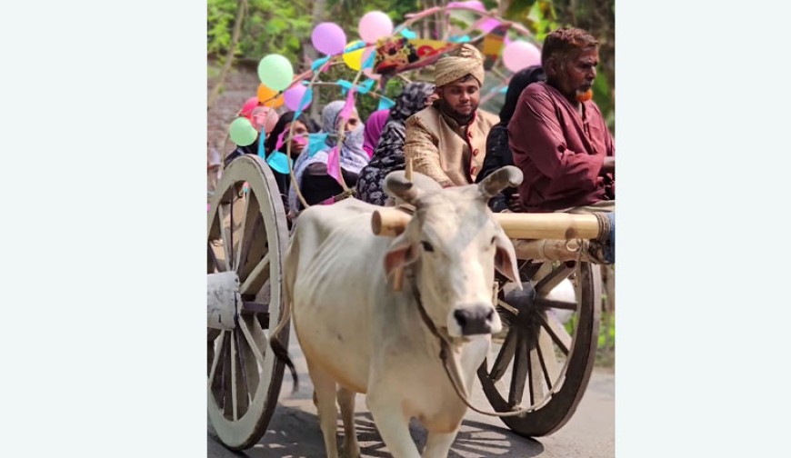 কালীগঞ্জ (ঝিনাইদহ) প্রতিনিধি : বর আর কনের বাড়ি ৫/৭ মিনিটের রাস্তা। তবুও বরযাত্রীসহ বর আসলেন সাজানো গরুর গাড়ির বহর নিয়ে। এক সময় বিয়েতে গরু ও ঘোড়ার গাড়ি বরসহ বরযাত্রীদের বাহন হিসেবে ব্যবহার হত। কিন্ত যান্ত্রিকীকরণের এখনকার দিনে এ সবের আর কিছুই নেই। বাংলার সেই হারানো ঐতিহ্যকে ধরে রাখতে এবং বিয়েটাকে স্মৃতিপূর্ণ ও আনন্দঘন করতেই এমন উদ্যোগ নেন বরপক্ষ। ব্যতিক্রমী আয়োজনের এ বিয়ে অনুষ্ঠিত হয়েছে ঝিনাইদহ কালীগঞ্জের নিয়ামতপুর ইউনিয়নের আড়ুয়াসলুয়া গ্রামে। জানাগেছে, ঈদের ৩য় দিনে সোমবার আড়ুয়াসলুয়া গ্রামের মিজানুর রহমানের পুত্র মেহেদী হাসানের সঙ্গে পাশের চাপরাইল গ্রামের হাফিজুর রহমানের কন্যা রাবেয়া খাতুনের বিয়ের দিন আগে থেকেই ধার্য করা হয়। সে মোতাবেক সোমবার দুপুরে বর আর বরযাত্রীরা আসেন সাজানো ৭ টি গরুর গাড়ির বহর নিয়ে। যা আশপাশের গ্রামের নারী পুরুষ,কিশোর কিশোরীসহ সব বয়সী মানুষ দেখে আনন্দ পায়। যা বিয়ে বাড়ির আনন্দটাও কয়েকগুন বাড়িয়ে দেয়। বর মেহেদী হাসান জানান, বাড়ির কাছাকাছি দুরত্বে বিয়ে করছেন। ফলে বিয়েটাকে স্মৃতিময় ও আনন্দপূর্ণ করতেই তার পরিবার গরুর গাড়ির ব্যতিক্রমী ব্যবস্থা করেছেন। এছাড়া এটি বাংলার অতীত ঐতিহ্য ধরে রাখারও একটা প্রয়াস। আড়ুয়াসলুয়া গ্রামের যুবক তুষার আহম্মেদ জানান, মুরব্বীদের মুখে গল্প শুনেছি আগেরকার দিনে মানুষ গরু গাড়ি, ঘোড়ার গাড়িযোগে বিয়ে করতে যেতেন। কিন্ত আজ সরাসরি দেখে বেশ আনন্দ পেয়েছি। তেমনি ভালো লেগেছে গ্রামের অন্যদেরও। একই গ্রামের শিক্ষিত যুবক নাইমুর রহমান সবুজ জানান, মানুষের জীবনের কয়েকটি বিষয় গুরুত্বপূর্ণ। তারমধ্যে বিয়ে একটি। তিনি জানান বর কনের বাড়ি পাশাপাশি গ্রামে হলেও দুরত্বের দিক দিয়ে অত্যন্ত নিকটবর্তী। আবার দুই পরিবারের সম্পর্কটাও কাছাকাছি। কারণ বর আর কনে মামাতো ফুফাতো ভাই বোন। সবচেয়ে বড় কথা গরুর গাড়ির বহর নিয়ে বিয়ে বাংলার হারানো ঐতিহ্যকে তুলে ধরেছেন তারা। ব্যতিক্রমী আয়োজনে গ্রামের মানুষও সেই রকমের আনন্দ পেয়েছে। যা কোটি টাকার বিয়েতে পাওয়া সম্ভব নয়।