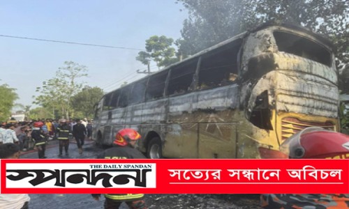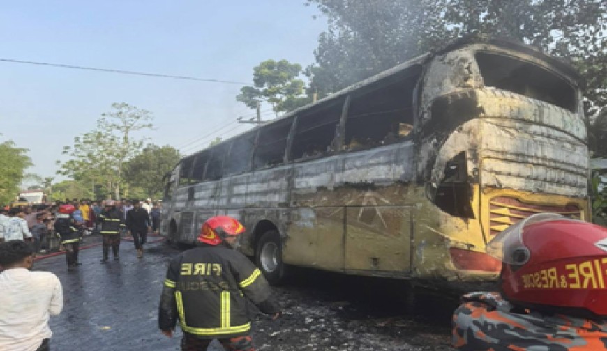 নিজস্ব প্রতিবেদক: যশোর নড়াইল মহাসড়কের ফতেপুরে যান্ত্রিক ত্রুটির কারণে যাত্রীবাহী একটি বাস পুড়ে গেছে। তবে বাসটির যাত্রীরা অক্ষত রয়েছে। শুক্রবার বিকাল সাড়ে চারটার দিকে ঘটনাটি ঘটে। এ ঘটনার একটি ভিডিও সোশ্যাল মিডিয়ায় ছড়িয়ে পড়ে। এতে দেখা যায়, বাসটি দাউদাউ করে জ্বলছে। প্রত্যক্ষদর্শী ও স্থানীয় সূত্রে জানা গেছে, দুপুরের দিকে যশোরের মণিহার থেকে অর্ধশতাধিক যাত্রী নিয়ে নড়াইল এক্সপ্রেস নামে বাস ঢাকার উদ্দেশ্যে রওনা দেয়। পতিমধ্যে যশোর সদর উপজেলার ফতেপুর এলাকায় পৌঁছালে ইঞ্জিনে আগুন ধরে যায়। মুহুর্তের মধ্যেই আগুন বাসের ভেতরে ছড়িয়ে পড়ে। এরপর বাসটিতে বিকট শব্দ হয়ে বন্ধ হয়ে গেলে বাসে থাকা যাত্রীরা আতঙ্কিত হয়ে জানালা ও দরজা দিয়ে বেরিয়ে আসে। পরে ফায়ার সার্ভিসের সদস্যরা ঘটনাস্থলে পৌঁছে প্রায় আধা ঘন্টায় আগুন নিয়ন্ত্রণে আনেন। দুর্ঘটনার কারণে মহাসড়কে কিছুক্ষণ যান চলাচল ব্যাহত হলেও পরে পরিস্থিতি স্বাভাবিক হয়। যশোর কোতায়ালি মডেল থানার ওসি (তদন্ত) কাজী বাবুল ইসলাম জানিয়েছেন, যশোর থেকে বাসটি ছাড়ার আগে ড্রাইভার বাসটির ত্রুটির কথা জানিয়েছিলেন বাস মালিকদের। তারপরেও মালিকদের জোরাজুরিতে ঢাকার উদ্দেশ্য রওনা দেন। বিষয়টি পুলিশ তদন্ত শুরু করেছে।