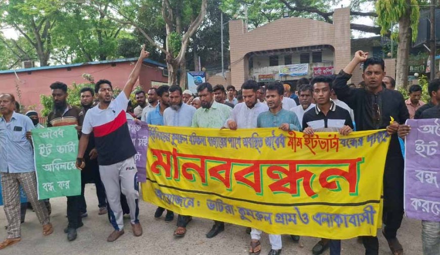 মাগুরা প্রতিনিধি : মাগুরার মহম্মদপুর উপজেলার ৩ নম্বর দীঘা ইউনিয়নের কুমরুল বটতলা বাজার সংলগ্ন ‘মীম ব্রিকস’ নামক অবৈধ ইটভাটা বন্ধের দাবিতে মানববন্ধন করেছেন স্থানীয় এলাকাবাসী।