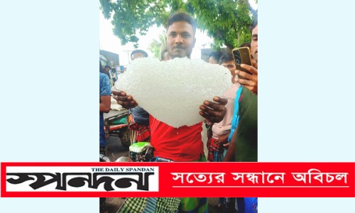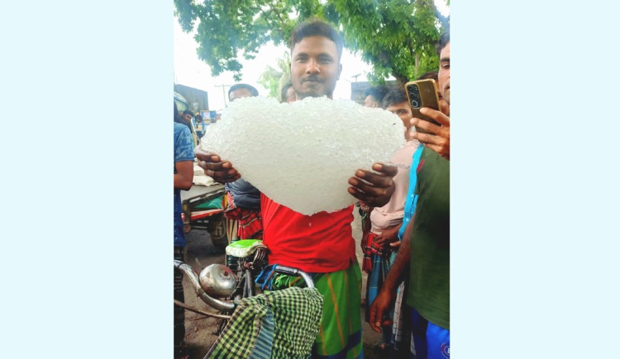 ঝিনাইদহ ও কালীগঞ্জ প্রতিনিধি : ঝিনাইদহের বিভিন্ন স্থানে কালবৈশাখী ঝড়ের সাথে শিলাবৃষ্টি হয়েছে। রোববার সন্ধ্যার পর থেকে জেলার বিভিন্ন উপজেলায় বৃষ্টির তীব্রতা থাকলেও কালীগঞ্জ উপজেলার কয়েকটি স্থানে বড় আকারের শিলা পড়ার খবর পাওয়া গেছে। তবে সবাইকে অবাক করে দিয়ে সোমবার সকালে কালীগঞ্জ উপজেলার পাঁচকাহুনিয়া মাঠ থেকে প্রায় এক মণ ওজনের একটি বিশালাকার শিলাখণ্ড উদ্ধার করেছেন এক কৃষক।