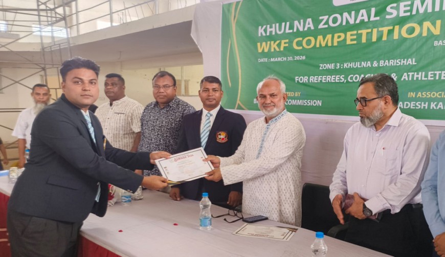নিজস্ব প্রতিবেদক : বাংলাদেশ কারাতে ফেডারেশনের সহযোগিতায় ও ফেডারেশনের রেফারি কমিশনের আয়োজনে খুলনা ও বরিশাল বিভাগের কারাতে রেফারি, কোচ এবং সিনিয়র অ্যাথলেটদের অংশগ্রহণে খুলনা জোনাল কারাতে রেফারি সেমিনার অনুষ্ঠিত হয়েছে।