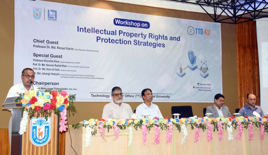 খুলনা প্রতিনিধি : খুলনা বিশ্ববিদ্যালয়ের টেকনোলজি ট্রান্সফার অফিস (টিটিও), হিট সাব প্রজেক্টের আওতায় ‘ইন্টেলেকচুয়াল প্রোপার্টি রাইটস এন্ড প্রটেকশন স্ট্র্যাটেজিস’ শীর্ষক কর্মশালা অনুষ্ঠিত হয়েছে। ৬ এপ্রিল (সোমবার) সাংবাদিক লিয়াকত আলী মিলনায়তনে এ কর্মশালার উদ্বোধনী অনুষ্ঠানে প্রধান অতিথি হিসেবে বক্তব্য রাখেন উপাচার্য প্রফেসর ড. মোঃ রেজাউল করিম।
