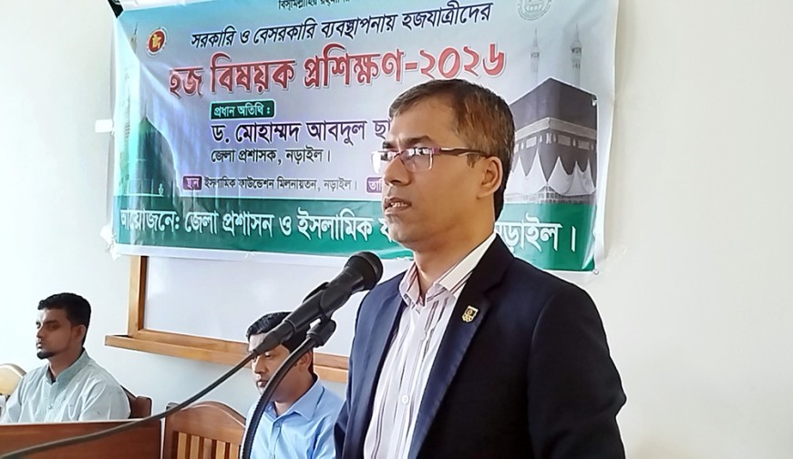 ফরহাদ খান, নড়াইল : নড়াইলে হজ প্রশিক্ষণের উদ্বোধন করা হয়েছে| মঙ্গলবার (৭ এপ্রিল) সকাল সাড়ে ১০টার দিকে ইসলামিক ফাউন্ডেশন মিলনায়তনে প্রশিক্ষণের উদ্বোধন করেন জেলা প্রশাসক ড. মোহাম্মদ আবদুল ছালাম| জেলা প্রশাসন ও ইসলামিক ফাউন্ডেশনের আয়োজনে এ প্রশিক্ষণে হজ গমন ইচ্ছুক ১৯৫ জন নারী ও পুরুষ অংশগ্রহণ করেন|