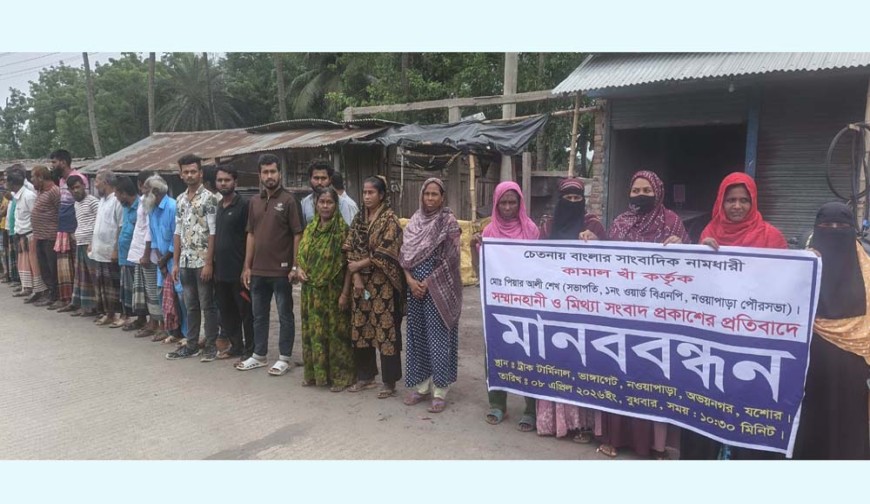 অভয়নগর (যশোর) প্রতিনিধি : যশোরের অভয়নগরে বিএনপি নেতা মো. পিয়ার আলী শেখের বিরুদ্ধে অপপ্রচারের প্রতিবাদে মানববন্ধন করেছে এলাকাবাসী| বুধবার (৮ এপ্রিল) সকালে নওয়াপাড়া পৌরসভার ১ন¤^র ওয়ার্ডবাসীর উদ্যোগে ভাঙ্গাগেট এলাকায় পৌর ট্রাক টার্মিনালের সামনে যশোর-খুলনা মহাসড়কে এ মানববন্ধন অনুষ্ঠিত হয়| মো. পিয়ার আলী শেখ নওয়াপাড়া পৌরসভার ১ন¤^র ওয়ার্ড বিএনপির সভাপতি|