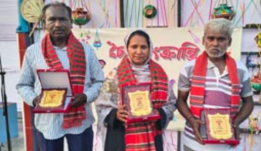 নিজস্ব প্রতিবেদক: যশোরে গ্রামীণ অর্থনীতিতে অবদান রাখায় তিনজন সফল উদ্যোক্তাকে সম্মাননা জানানো হয়েছে। সোমবার বিকালে যশোর শহরের ভৈরব নদের পাড়ে চৈত্র সংক্রান্তি ও বর্ষবরণ অনুষ্ঠানে এই তিন উদ্যোক্তার গলায় উত্তরীয় পরিয়ে ও হাতে সম্মাননা স্মারক তুলে দিয়ে সম্মান জানানো হয়। প্রথম আলো যশোর বন্ধুসভা এই অনুষ্ঠানের আয়োজক। সম্মাননাপ্রাপ্ত তিন উদ্যোক্ত হলেন-কাগজের কলম তৈরির উদ্যোক্তা যশোর শহরের লোন অফিসপাড়া এলাকার বাসিন্দা নাছিমা আক্তার, কাঠ শিল্পের উদ্যোক্তা সদর উপজেলার তেঘরিয়া গ্রামের বাসিন্দা সুবোধ কুমার রায় ও কামারশালায় লোহার দা-বটি-কাচি তৈরীর সফল উদ্যোক্তা শহরের বারান্দি কদমতলা এলাকার বাসিন্দা তপন কর্মকার। বিকেল পাঁচটায় বাউল গানের মধ্যদিয়ে অনুষ্ঠান শুরু হয়। বাউলীয়া সংঘ যশোরের শিল্পীরা বাউল গান পরিবেশন করেন। এরপর গুণীজন সম্মাননা অনুষ্ঠান শুরু হয়। যশোর চেম্বার অফ কমার্স ইন্ডাস্ট্রি সাধারণ সম্পাদক তানভীরুল ইসলাম সোহান, সম্মিলিত সাংস্কৃতিক জোট যশোরের সভাপতি দীপঙ্কর দাস রতন, প্রথম আলোর প্রতিনিধি মনিরুল ইসলামসহ অতিথিরা সম্মাননাপ্রাপ্ত উদ্যোক্তাদের হাতে সম্মাননা স্মারক ও উত্তরীয় পরিয়ে দেন। অনুষ্ঠানের সমাপনী বক্তব্য রাখেন বন্ধুসভার সভাপতি লাকি রানী কাপুড়িয়া, বক্তব্য রাখেন সাধারণ সম্পাদক রাইয়াদ ফেরদৌস। অনুষ্ঠান সঞ্চালনা করেন বন্ধুসভার বন্ধু দীপান্বিতা সিংহ রায়। উদ্যোক্তা তপন কর্মকার বলেন- ৪০ বছর ধরে আমি লোহা পিটিয়ে দা- বটি- খুনতা -কোদাল- কাচি তৈরি করছি। প্রান্তিক কাজ করি বলে আমাদের কেউ মূল্যায়ন করে না। প্রথম আলো বন্ধুসভা আমাকে যে সম্মান দিল তা হৃদয়ের মণি কোথায় রেখে দিলাম’। কাগজের কলম তৈরির উদ্যোক্তা নাসিমা আক্তার বলেন-‘ডেইলি স্টার পত্রিকা ঢাকায় নিয়ে আমাকে সম্মাননা দিয়েছে। কিন্তু যশোরের মানুষ আমাকে সম্মান জানায়নি। এ নিয়ে আমার অনেক কষ্ট ছিল। আজ সম্মাননা পেয়ে আমার সেই কষ্ট নিবারণ হয়েছে’। সম্মাননা শেষে বাউল গান পরিবেশন এর মধ্যদিয়ে অনুষ্ঠান শেষ হয়। অনুষ্ঠানের মাঝে গ্রামের ঐতিহ্যবাহী খাবার মুড়ি মুড়কি, বাতাসা খই, নকুল দানা, কদমা দিয়ে অনুষ্ঠানে উপস্থিত দর্শক শ্রোতাদের মিষ্টিমুখ করানো হয়।