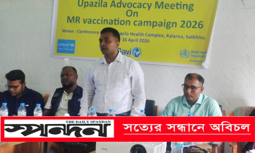 কলারোয়া প্রতিনিধি : কলারোয়ায় হাম-রুবেলা প্রতিরোধে টিকাদান অভিযানের অ্যাডভোকেসি সভা অনুষ্ঠিত হয়েছে। বৃহস্পতিবার কলারোয়া উপজেলা স্বাস্থ্য কমপ্লেক্সে অনুষ্ঠিত এ অনুষ্ঠানে প্রধান অতিথি ছিলেন উপজেলা নির্বাহী অফিসার আরিফুল ইসলাম। উপজেলা স্বাস্থ্য ও প.প. কর্মকর্তা ডা. শফিকুল ইসলামের সভাপতিত্বে অনুষ্ঠিত অ্যাডভোকেসি সভায় হাম-রুবেলার প্রতিষেধক টিকা প্রদান অভিযানের বিষয়ে সকলকে অবগত করানো হয়। ডা. শফিকুল ইসলাম আরও জানান, হাম-রুবেলার প্রতিষেধক এমআর টিকা ক্যাম্পেইন সারা দেশের ন্যায় আগামী ২০ এপ্রিল থেকে ১০ মে পর্যন্ত চলবে। ৬ মাস থেকে ৫ বছর বয়সী শিশুরা এই টিকাদান কর্মসূচির আওতায় থাকবে। কলারোয়া উপজেলার ২০ হাজারের অধিক শিশুকে এই টিকা প্রদান করা হবে। অনুষ্ঠানে বিশেষ অতিথি ছিলেন কলারোয়া থানার অফিসার ইনচার্জ এইচএম শাহীন, উপজেলা পরিবার পরিকল্পনা কর্মকর্তা মোশফিয়াতুন নাহার, কানিজ ফাতিমা, উপজেলা প্রাথমিক শিক্ষা অফিসার মাসুদুর রহমান, ডাক্তার সুমন সরকার, উপজেলা সহকারী মাধ্যমিক শিক্ষা কর্মকর্তা হারুনুর রশিদ মোল্লা, ডা. বাপ্পি দাশ, কলারোয়া প্রেসক্লাবের আহবায়ক তাওফিকুর রহমান সঞ্জু, রিপোর্টার্স ক্লাবের সভাপতি মোস্তাক আহমেদ,শিক্ষক নেতা মোস্তফা বাকীবিল্লাহ, মাস্টার শেখ নুরুল্লাহ প্রমুখ।