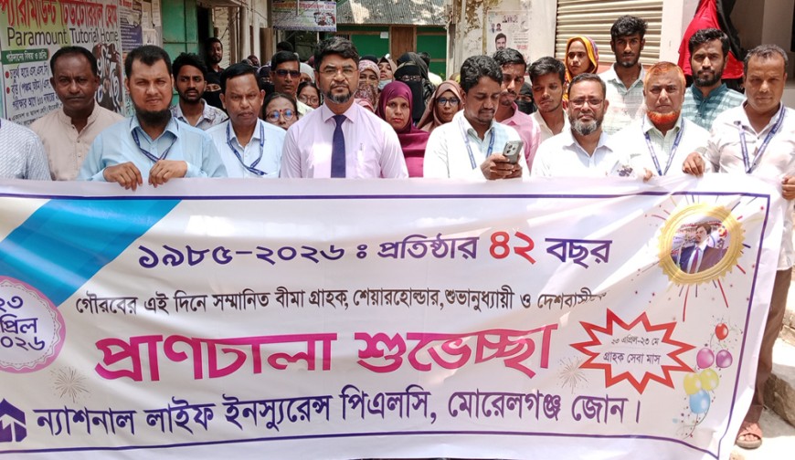 মোরেলগঞ্জ (বাগেরহাট) প্রতিনিধি : বাগেরহাটের মোরেলগঞ্জে ন্যাশনাল লাইফ ইন্সুরেন্স পিএলসি’র ৪২ তম প্রতিষ্ঠাবার্ষিকী উপলক্ষে বৃহস্পতিবার বর্ণাঢ্য শোভাযাত্রা, আলোচনা সভা ও কেক কাটার আয়োজন করা হয়েছে।