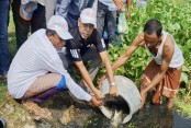 নিজস্ব অর্থায়নে কপোতাক্ষ নদে মাছের পোনা অবমুক্ত অবসরপ্রাপ্ত মেজরের