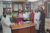 চৌগাছা প্রতিনিধি : যশোরের চৌগাছায় নবাগত উপজেলা নির্বাহী কর্মকর্তা মিজ শাহিনুর আক্তারকে ফুলেল শুভেচ্ছা জানিয়েছেন প্রেসক্লাব চৌগাছার নেতৃবৃন্দ। সোমবার (২৭ অক্টোবর) দুপুরে উপজেলা নির্বাহী কর্মকর্তার কার্যালয়ে এ ফুলেল শুভেচ্ছা জানানো হয়। এ সময় প্রেসক...