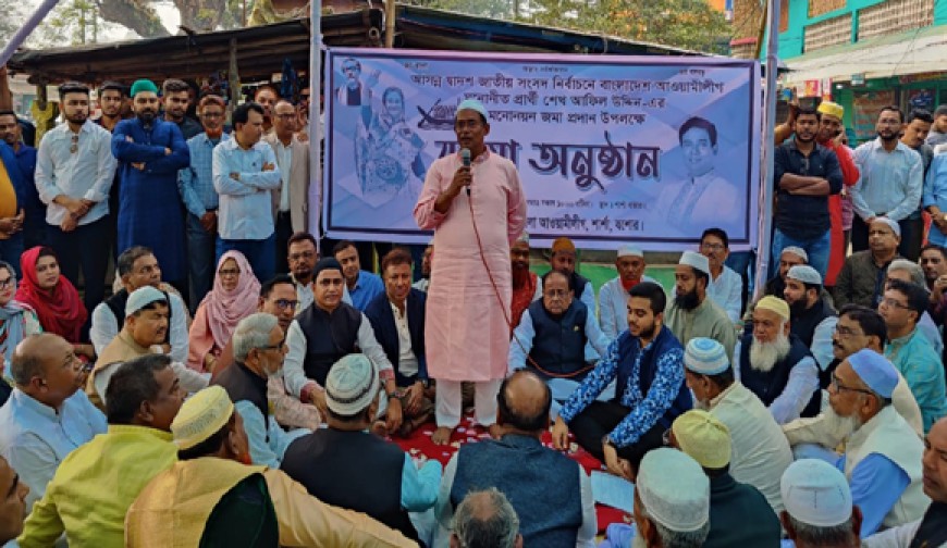 নিজস্ব প্রতিবেদক: শার্শা উপজেলা আওয়ামী লীগের আয়োজনে আসন্ন দ্বাদশ জাতীয় সংসদ নির্বাচনে বাংলাদেশ আওয়ামী লীগ মনোনীত প্রার্থী শেখ আফিল উদ্দিন এমপি’র মনোনয়ন জমা প্রদান উপলক্ষে বুধবার দোয়া অনুষ্ঠানের আয়োজন করা হয়। এ সময় নৌকার মাঝি শেখ আফিল উদ্দিন দিকনির্দেশনামূলক বক্তব্য রাখেন। উপস্থিত ছিলেন শার্শা উপজেলা আওয়ামী লীগের সভাপতি উপজেলা চেয়ারম্যান বীরমুক্তিযোদ্ধা সিরাজুল হক মঞ্জুসহ নেতৃবৃন্দ, যুবলীগ, ছাত্রলীগ, স্বেচ্ছাসেবকলীগ, কৃষকলীগসহ অঙ্গ সংগঠনের বিভিন্ন পর্যায়ের নেতৃবৃন্দ, ১১ ইউনিয়নের সভাপতি, সাধারণ সম্পাদক ও সকল ইউনিয়নের চেয়ারম্যানবৃন্দ।