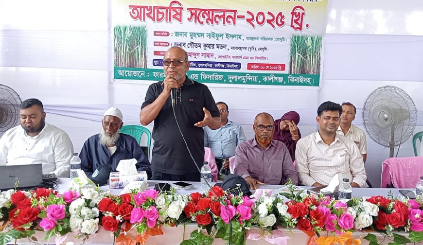 কালীগঞ্জ (ঝিনাইদহ) প্রতিনিধি: কালীগঞ্জে আধুনিক কলাকৌশল প্রয়োগে লাভজনক পদ্ধতিতে আখচাষ বিষয়ক আখচাষি সম্মেলন অনুষ্ঠিত হয়েছে। শনিবার বেলা ১১টায় দুলালমুন্দিয়া ফার্মাস এগ্রো এন্ড ফিসারিজে এ সম্মেলন অনুষ্ঠিত হয়। ফার্মাস এগ্রো এন্ড ফিসারিজ এর প্রোপাইটার আব্দুস সামাদের সভাপতিত্বে অনুষ্ঠিত সম্মেলনে প্রধান অতিথি হিসাবে উপস্থিত ছিলেন, মোবারকগঞ্জ সুগার মিলের ব্যবস্থাপনা পরিচালক সাইফুল ইসলাম ও প্রধান আলোচক ছিলেন মিলের মহাব্যবস্থাপক (কৃষি) গৌতম কুমার মন্ডল।