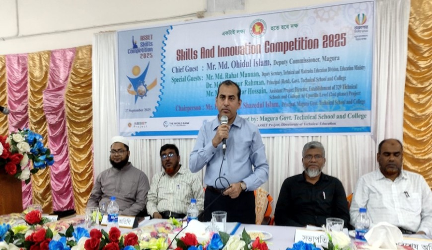 মাগুরা প্রতিনিধি : মাগুরায় কারিগরি শিক্ষার্থীদের মেধা ও উদ্ভাবনী শক্তি বিকাশের লক্ষ্যে শনিবার দিনব্যাপী মাগুরা সরকারি টেকনিক্যাল স্কুল এন্ড কলেজে স্কিলস এন্ড ইনোভেশন কম্পিটিশন ২০২৫ এর প্রাতিষ্ঠানিক পর্বের প্রতিযোগিতা অনুষ্ঠিত হয়েছে। এ প্রতিযোগিতায় প্রতিষ্ঠানের চারটি টেকনোলজি থেকে মোট ৬ টি উদ্ভাবনী প্রকল্প উপস্থাপন করা হয়। এ প্রতিযোগিতায় প্রথম স্থান ফিক্সড ডিসি পাওয়ার সাপ্লাই, দ্বিতীয় অটোমেটিক স্টুডেন্ট কাউন্টিং মেশিন ও লো কষ্ট এয়ার কুলার ৩য় স্থান অর্জন করে।