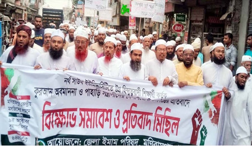 মণিরামপুর প্রতিনিধি: নর্থ সাউথ বিশ্ববিদ্যালয়ের শিক্ষার্থী কর্তৃক পবিত্র কুরআন অবমাননা এবং পাহাড়ি সন্ত্রাসীদের দেশবিরোধী চক্রান্তের প্রতিবাদে যশোরের মণিরামপুরে বিক্ষোভ সমাবেশ ও মিছিল অনুষ্ঠিত হয়।