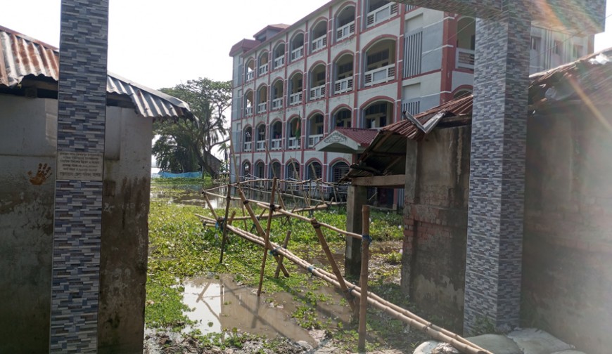 সিরাজুল ইসলাম, কেশবপুর : কেশবপুর উপজেলার পাঁজিয়া ইউনিয়নে মনোহরনগর মাধ্যমিক বিদ্যালয়টি দীর্ঘদিন যাবৎ জলাবদ্ধতায় প্লাবিত হয়ে আছে। শিক্ষক-শিক্ষার্থীদের বিদ্যালয়ের শ্রেণীকক্ষে যেতে হয় বাঁশের সাঁকোর উপর দিয়ে।