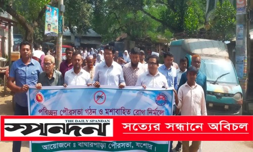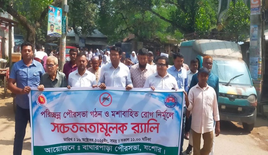 বাঘারপাড়া প্রতিনিধি: বাঘারপাড়া পৌরসভায় পরিচ্ছন্নতা কার্যক্রম জোরদার ও মশাবাহিত রোগ যেমন ডেঙ্গু, চিকুনগুনিয়া ও ম্যালেরিয়া প্রতিরোধে জনসচেতনতা সৃষ্টির লক্ষ্যে এক বর্ণাঢ্য র্যালি অনুষ্ঠিত হয়েছে।