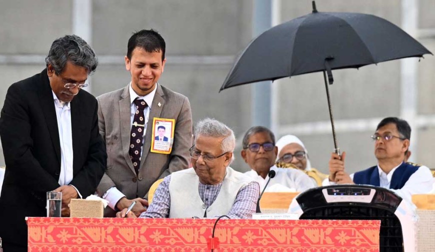 সনদে স্বাক্ষরের পর প্রধান উপদেষ্টা তার ভাষণে সৃষ্টিকর্তার প্রতি কৃতজ্ঞতা প্রকাশ করেন।