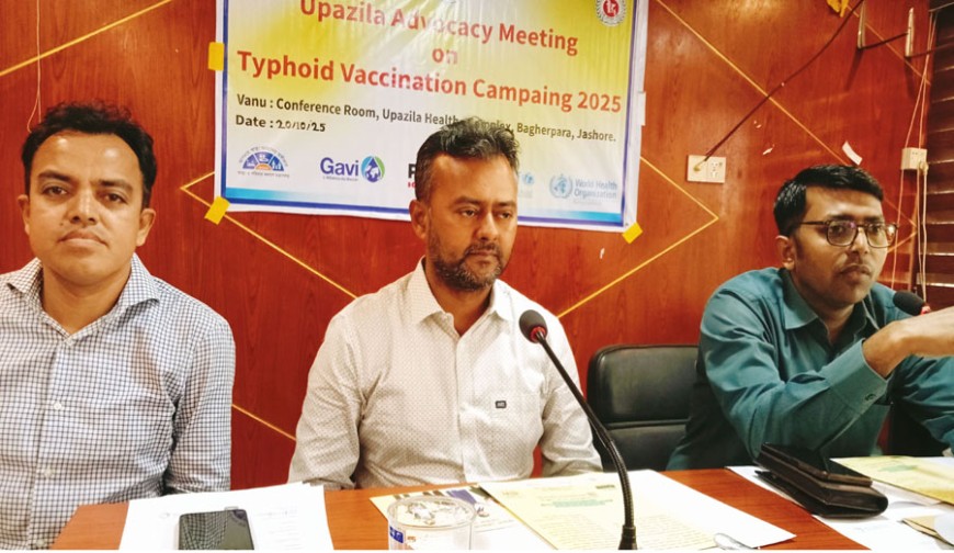 বাঘারপাড়া (যশোর) প্রতিনিধি : যশোরের বাঘারপাড়ায় টাইফয়েড টিকাদান ক্যাম্পেইন বিষয়ে অ্যাডভোকেসি সভা অনুষ্ঠিত হয়েছে। সোমবার সকাল ১১ টায় উপজেলা নির্বাহী অফিসারের সভা কক্ষে এ সংক্রান্ত সভা অনুষ্ঠিত হয়। উপজেলা স্বাস্থ্য কমপ্লেক্্র এ সভার আয়োজন করেন। অনুষ্ঠানে সভাপতিত্ব করেন উপজেলা নির্বাহী অফিসার শোভন সরকার। এসময় বক্তব্য রাখেন স্বাস্থ্য ও পরিবার পরিকল্পনা কর্মকর্তা ডা: অরূপ জ্যোতি ঘোষ, পরিবার পরিকল্পনা কর্মকর্তা ডা: আবু বক্কর, মাধ্যমিক শিক্ষা কর্মকর্তা আশিকুজ্জামান, প্রাথমিক শিক্ষা কর্মকর্তা ইসমত আরা পারভীন, প্রেসক্লাবের সাধারণ সম্পাদক হুমায়ুন কবীর, মাওলানা মাছুম বিল্লাহ প্রমুখ। এসময় উপজেলার বিভিন্ন দপ্তরের কর্মকর্তা, ইসলামিক ফাউন্ডেশনের সুপারভাইজার, পুলিশ কর্মকর্তা, শিক্ষা প্রতিষ্ঠানে প্রধান উপস্থিত ছিলেন।