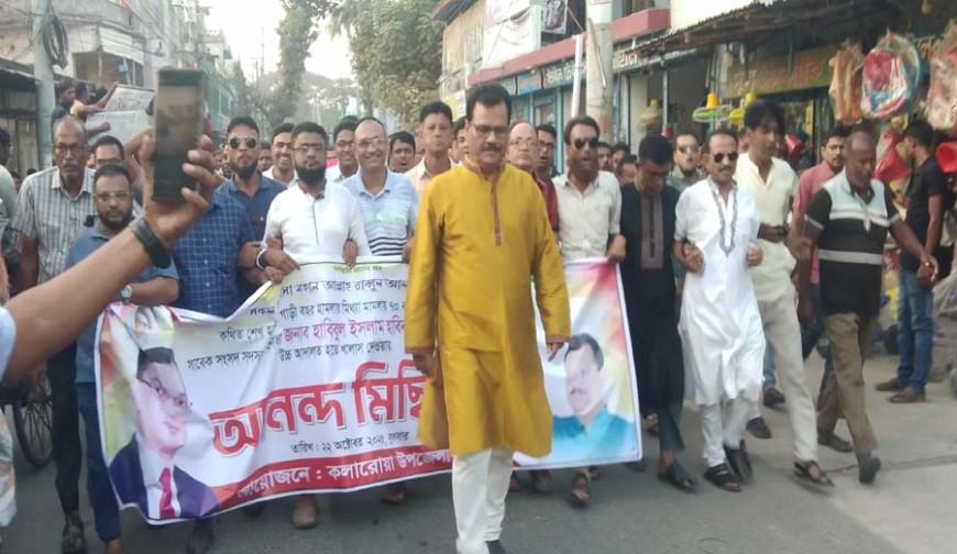 কলারোয়া প্রতিনিধি: শেখ হাসিনার গাড়িবহর হামলা মামলায় সাজাপ্রাপ্ত সকল নেতৃবৃন্দ উচ্চ আদালত থেকে খালাস পেয়েছেন। বুধবার উচ্চ আদালত এই রায় দেন। এই রায়ে সন্তুষ্টি প্রকাশ করে কলারোয়ায় বিএনপির আনন্দ মিছিল ও সমাবেশ অনুষ্ঠিত হয়। বুধবার বিকেলে কলারোয়া উপজেলা বিএনপির আয়োজনে অনুষ্ঠিত এ আনন্দ মিছিল ও সমাবেশে প্রধান অতিথি হিসাবে উপস্থিত ছিলেন এই মামলায় ৭০ বছরের সাজাপ্রাপ্ত তালা-কলারোয়ার সাবেক এমপি হাবিবুল ইসলাম হাবিব।