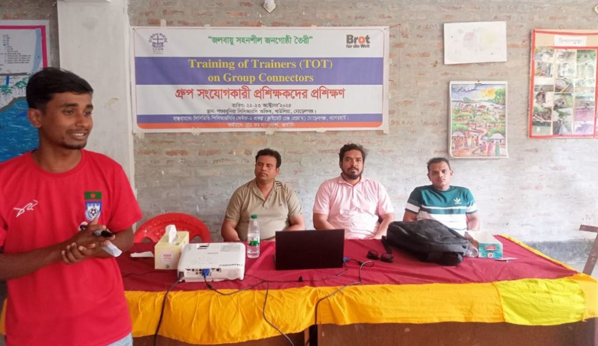 খাউলিয়া ইউনিয়নের পশরবুনিয়া গ্রামে গত বুধ ও বৃহস্পতিবার জলবায়ু সহনশীল জনগোষ্ঠী গঠনে গ্রুপ সংযোগকারী প্রশিক্ষকদের প্রশিক্ষণ অনুষ্ঠিত হয়েছে। জলবায়ু পরিবর্তনের বিরুপ প্রভাব মোকাবেলায় স্থানীয় জনসাধারণকে সক্ষম করে তোলার লক্ষ্যে মোরেলগঞ্জ সিসিআরসি’র উদ্যোগে এবং সিসিডিবি’র বাস্তবায়ন ও সহযোগিতায় ‘গ্রুপ সংযোগকারী প্রশিক্ষকদের প্রশিক্ষণ’ অনুষ্ঠিত হয়।