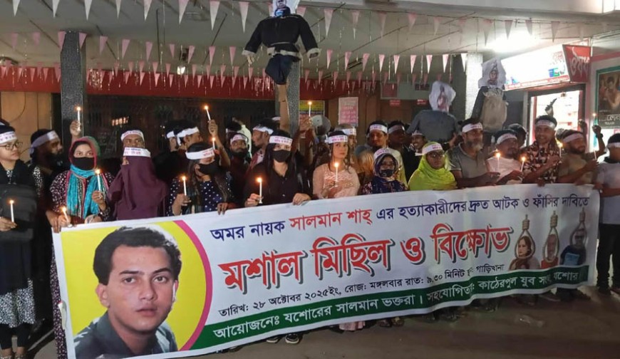 নিজস্ব প্রতিবেদক: বাংলাদেশের জনপ্রিয় চিত্রনায়ক সালমান শাহ হত্যা মামলার আসামিদের দ্রুত আটক ও ফাঁসির দাবিতে মশাল মিছিল হয়েছে যশোরে।